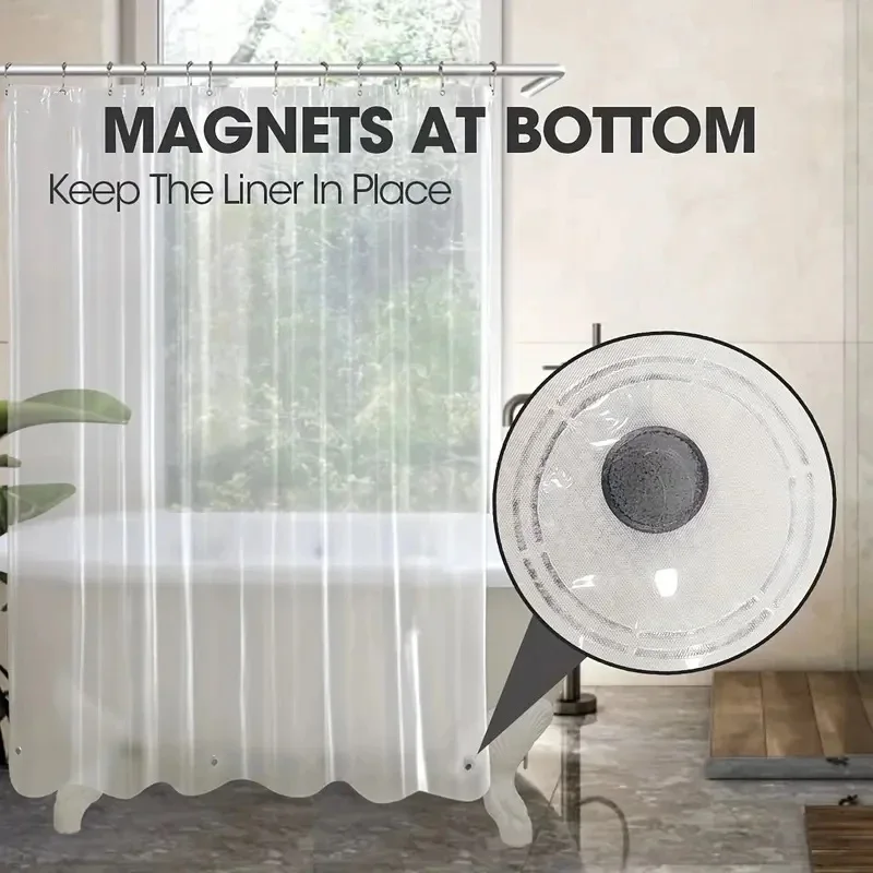 1pc Lightweight Clear Shower Curtain Liner with Magnets & Metal Grommets, Waterproof Plastic Bathroom Curtain Bath Curtain
