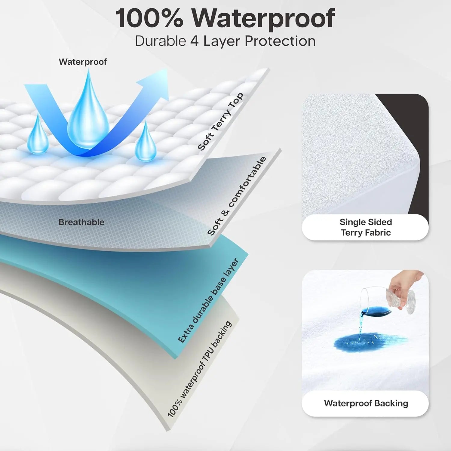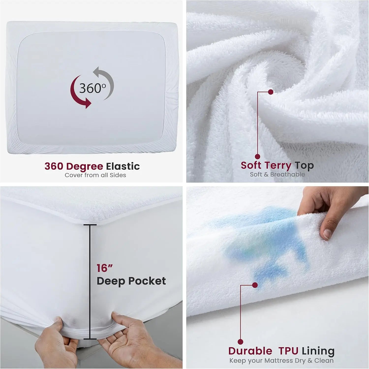 [WATERPROOF BARRIER] Our terry top mattress protector features a reliable waterproof layer, safeguarding your mattress against spills, stains, and accidents. Sleep worry-free
