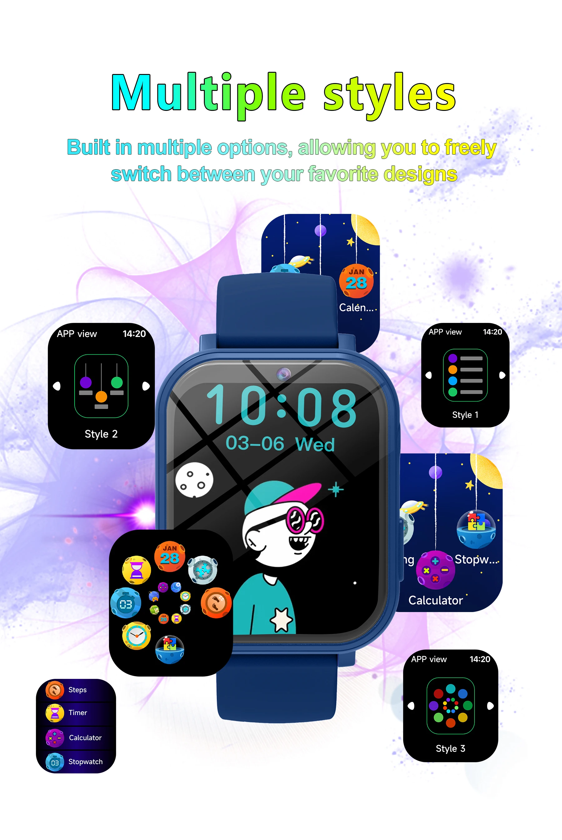 The watch offers a variety of built-in theme options, allowing kids to customize their watch interface based on their personal preferences. Whether they love cool futuristic designs, playful cartoon styles, or simple and elegant layouts, thereβs a theme to match every personality!