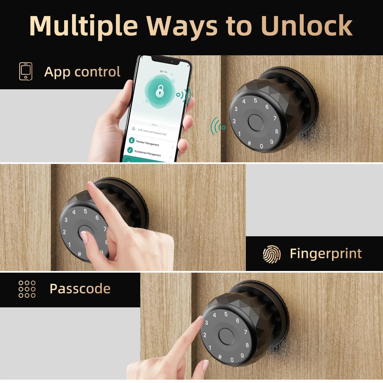 Doorknob Funcition: Biometric,Key & Keypad