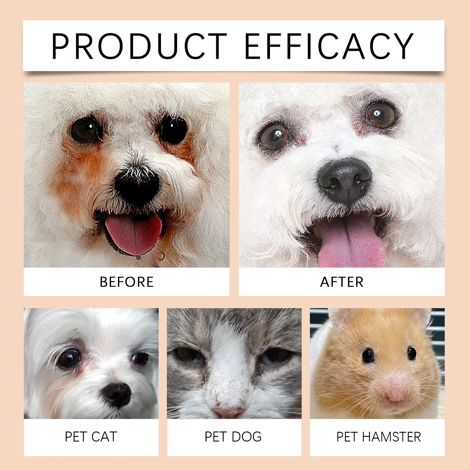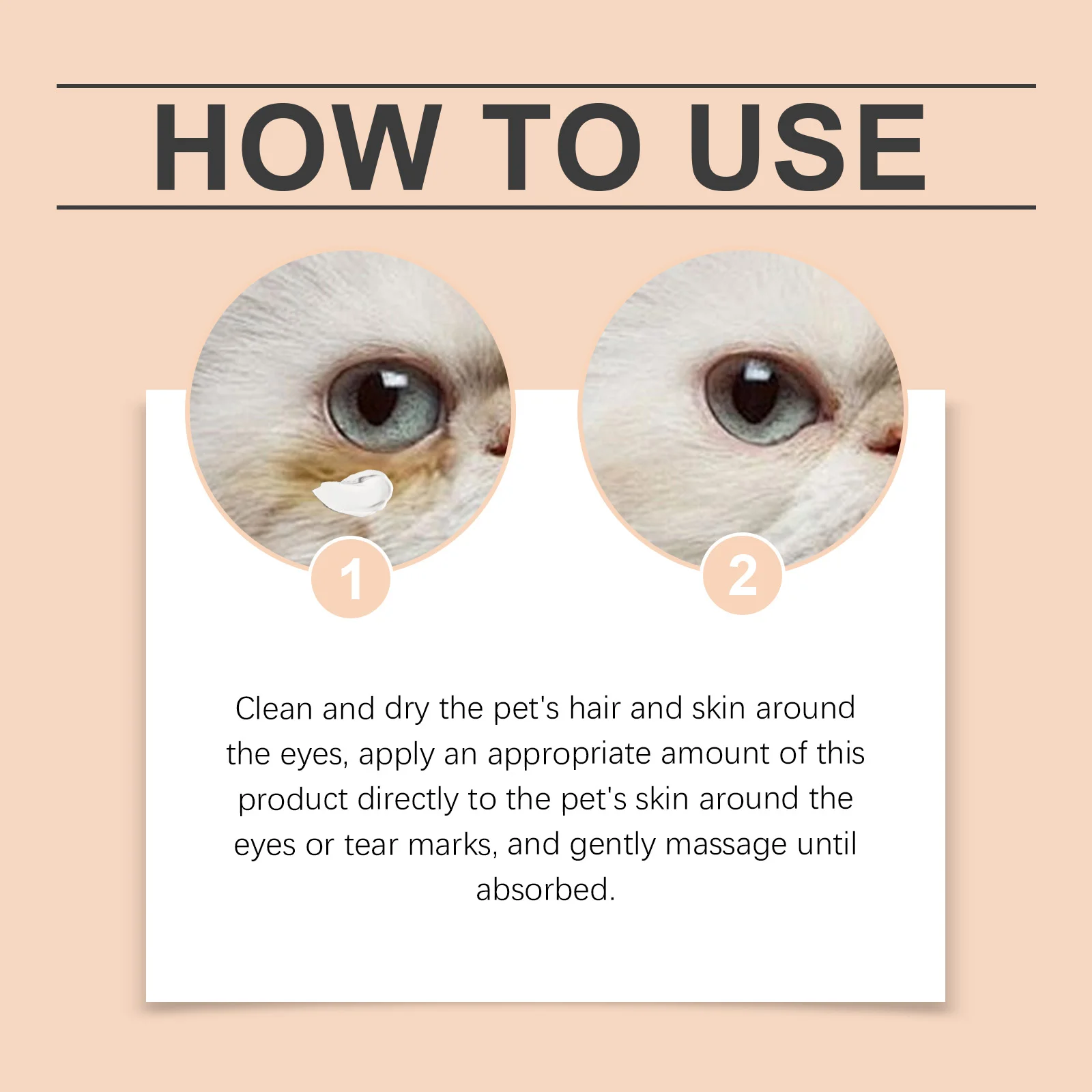 2. Apply an appropriate amount of this product directly to the pet's skin around the eyes or tear marks