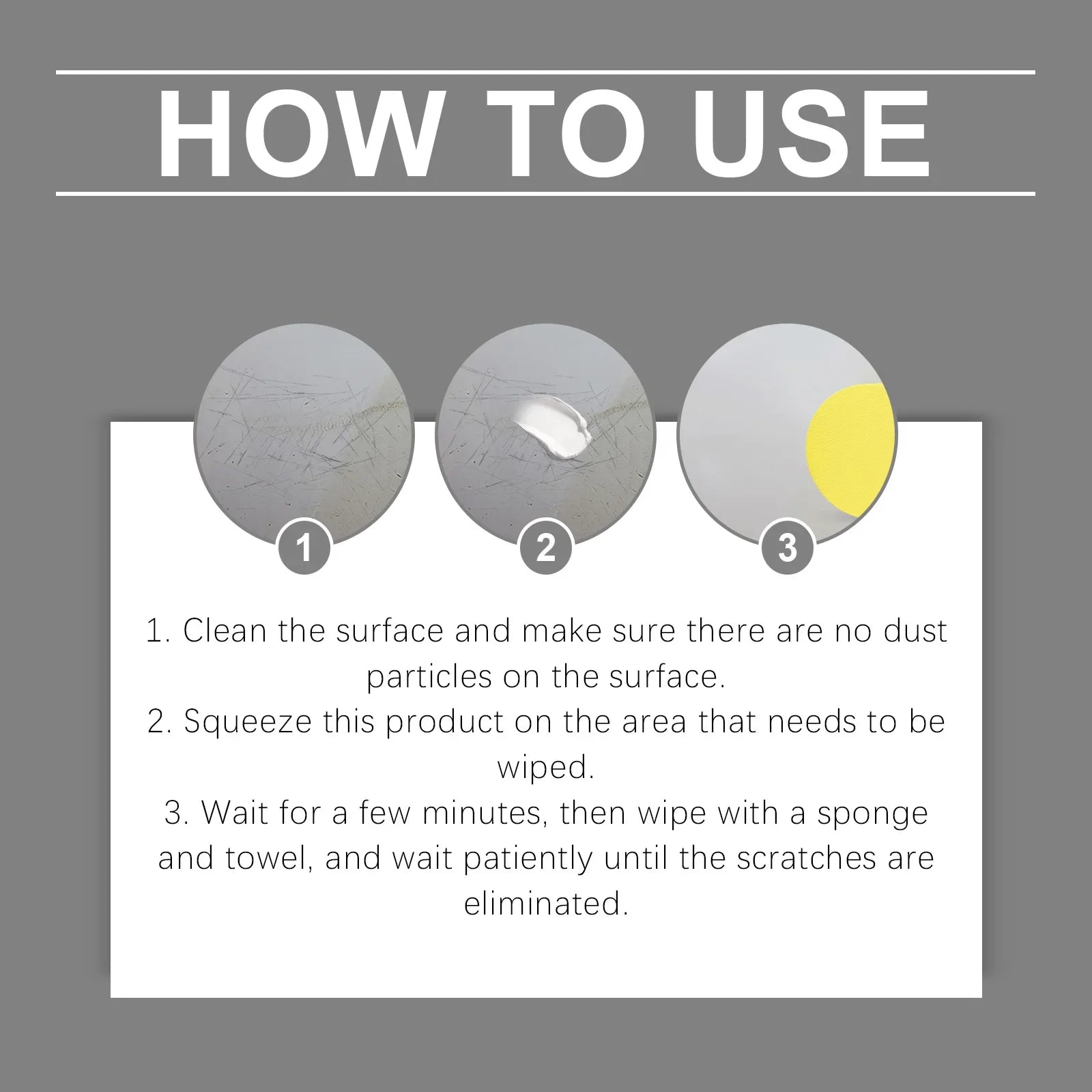 Our car scratch wax paint maintenance solution contains calcium carbonate and glycerin. It can quickly repair scratches and defects on the car's paint surface, making the body look refreshed and restoring its original luster. Its usage is simple: 1. Clean the surface to ensure that there are no dust particles on the surface. 2. Squeeze this product onto the area that needs to be wiped. 3. Wait for a few minutes, then wipe with a sponge and towel and patiently wait until the scratches are eliminated. And it can completely remove various stubborn stains on the surface of the car, restoring the bright color of the car paint surface.